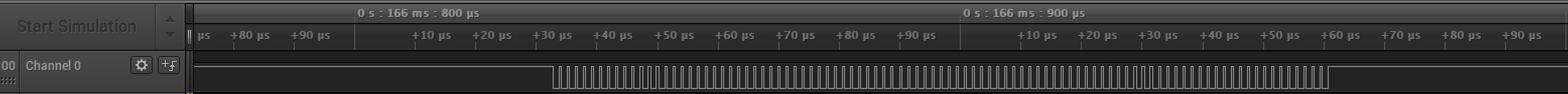 - 0의 경우 : 0.3us(HIGH)+0.9us(LOW) 로 구성 (T0H + T0L + T0L +T0L)