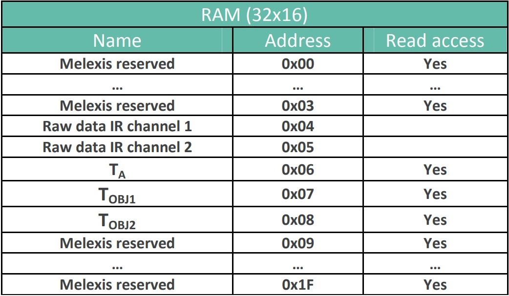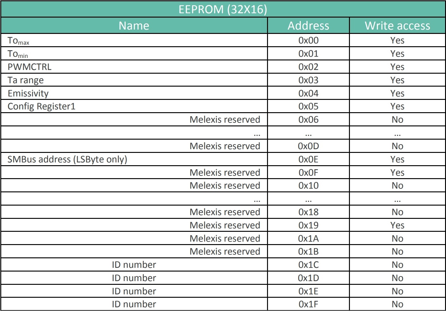 - (ex : RAM Obj1 온도 : 0x07, EEPROM Emissivity(방사율) : 0x24)