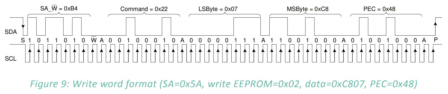 - 사용자가 전송할 데이터는 Command, LSByte, MSByte, PEC 총 4바이트