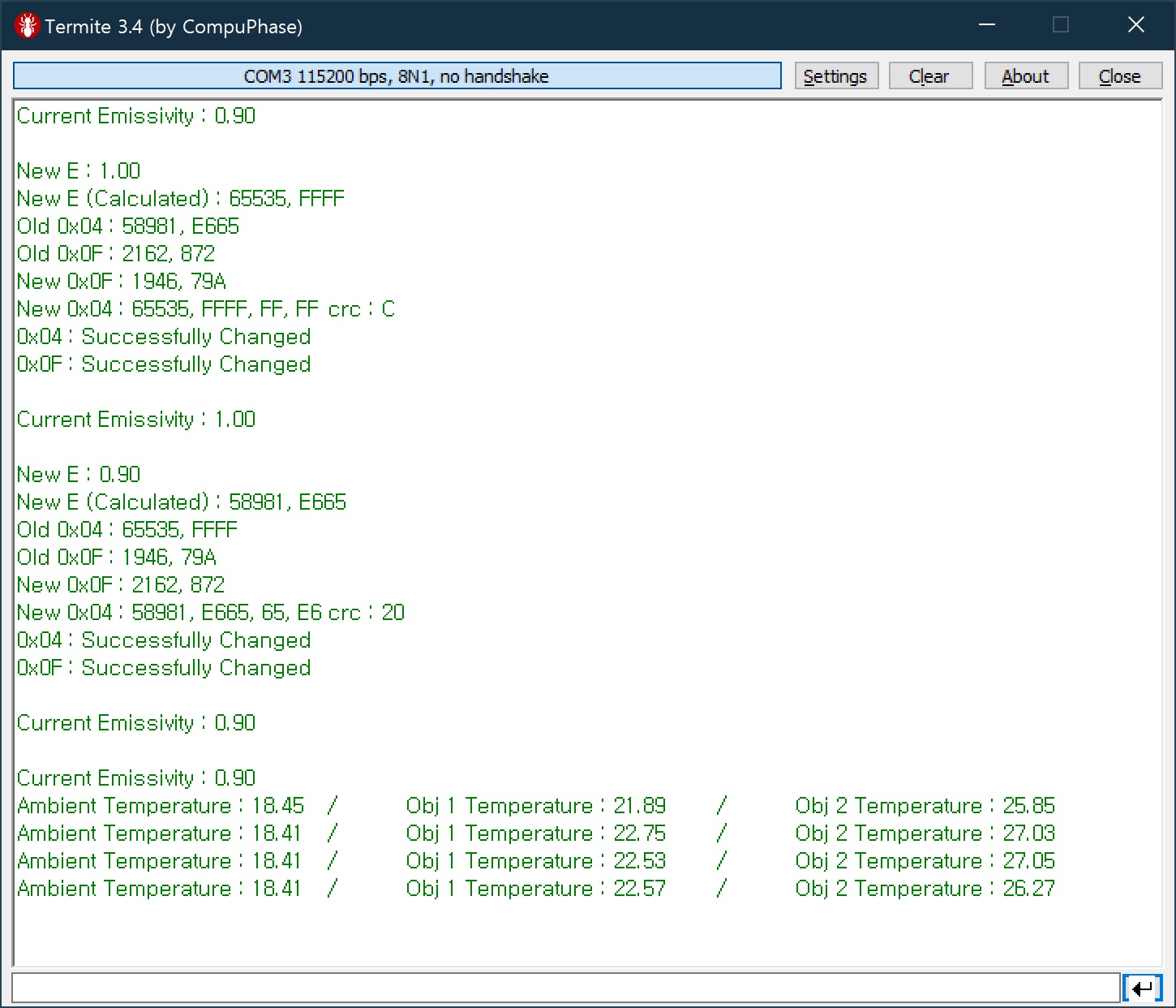 mlx_read_emissivity(); //현재 설정되어있는 방사율 읽기 (설정 변경 확인용)