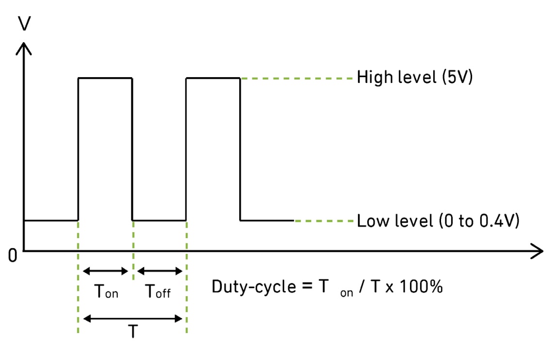- PWM 신호가 5 V일 때 (듀티 사이클 100%), 팬은 최고 속도로 회전한다