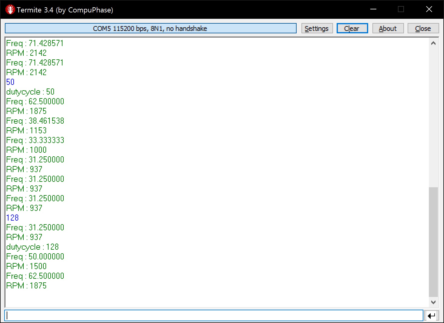 - 듀티 사이클이 고정된 상태라도 RPM은 완벽히 고정되지 않고 일정 간격 내에서 계속 변화한다