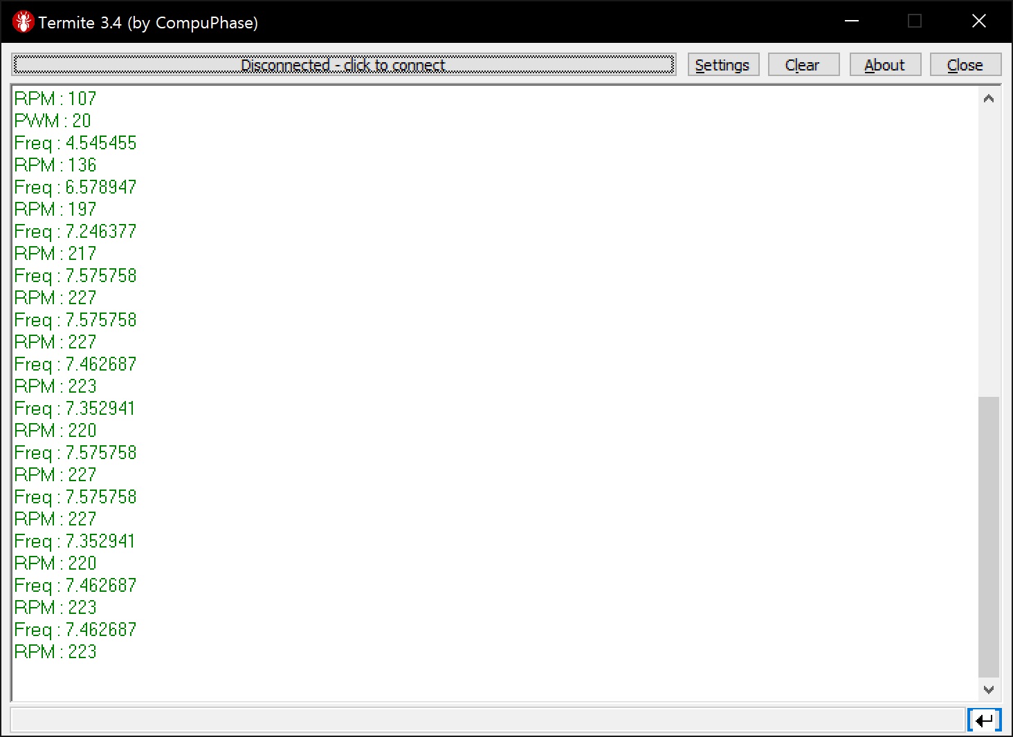 printf("RPM : 0\r\n");