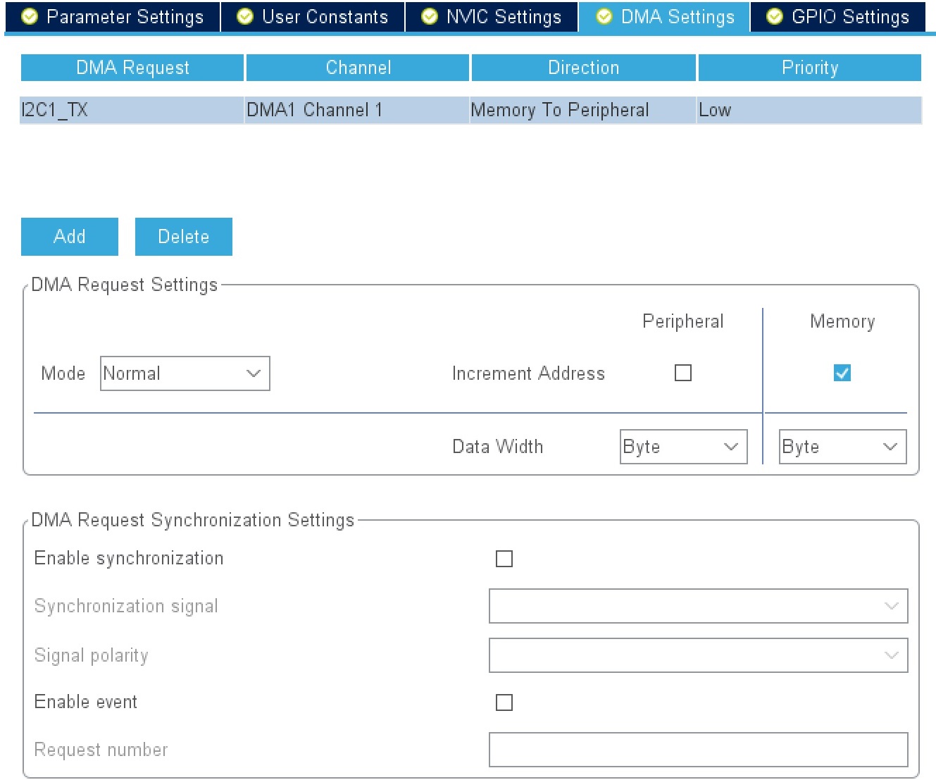 - I2C Speed Mode의 경우, 데이터 시트에 맞춰 400KHz의 속도를 갖는 Fast Mode를 선택했으나 1000KHz의 속도를 갖는(1us) Fast Mode Plus로 설정해도 정상적으로 작동하는 것을 확인