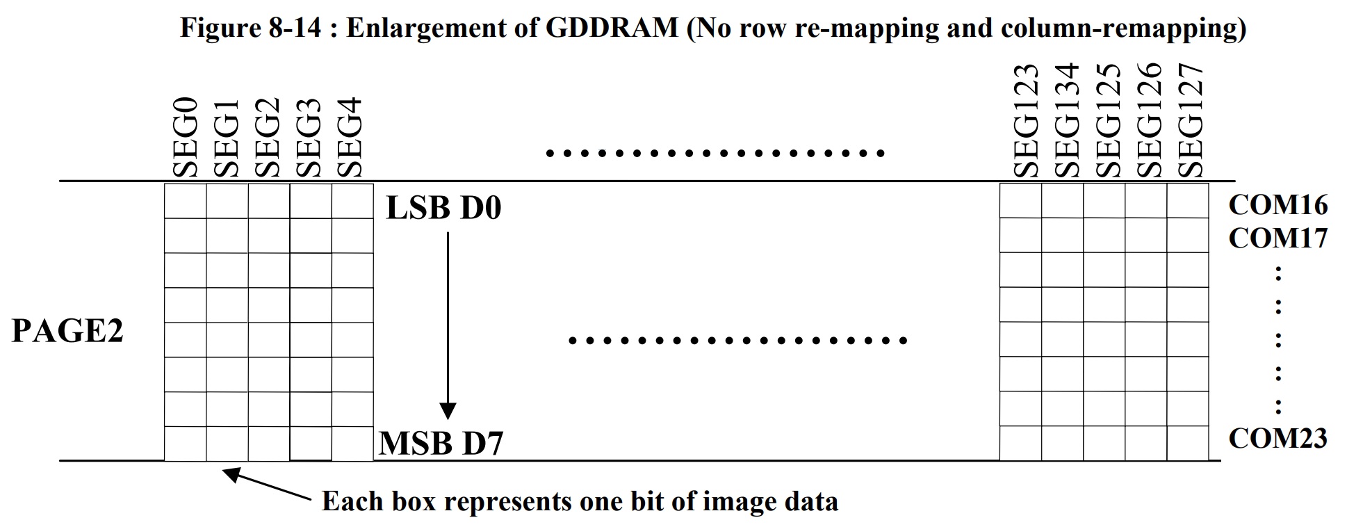 - 각 페이지는 127개의 세그먼트로 구성되어 있고 각 세그먼트는 8 bit (1 Byte) 데이터를 가지고 있다