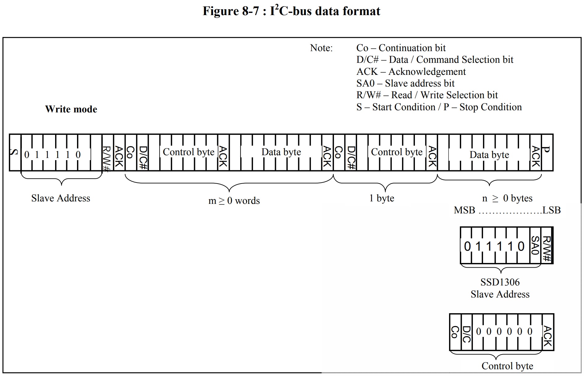 - Control Byte는 Co(0) + D/C#(Command=0, Data=1) + 00000 로 구성된다